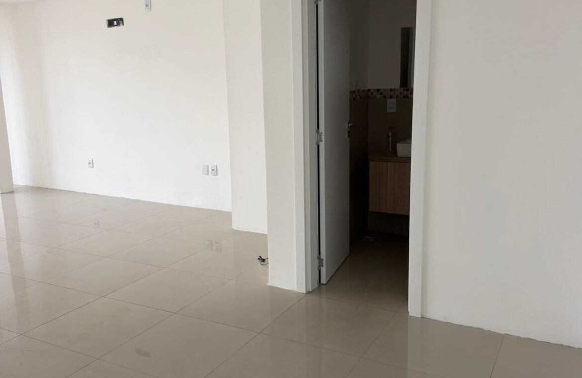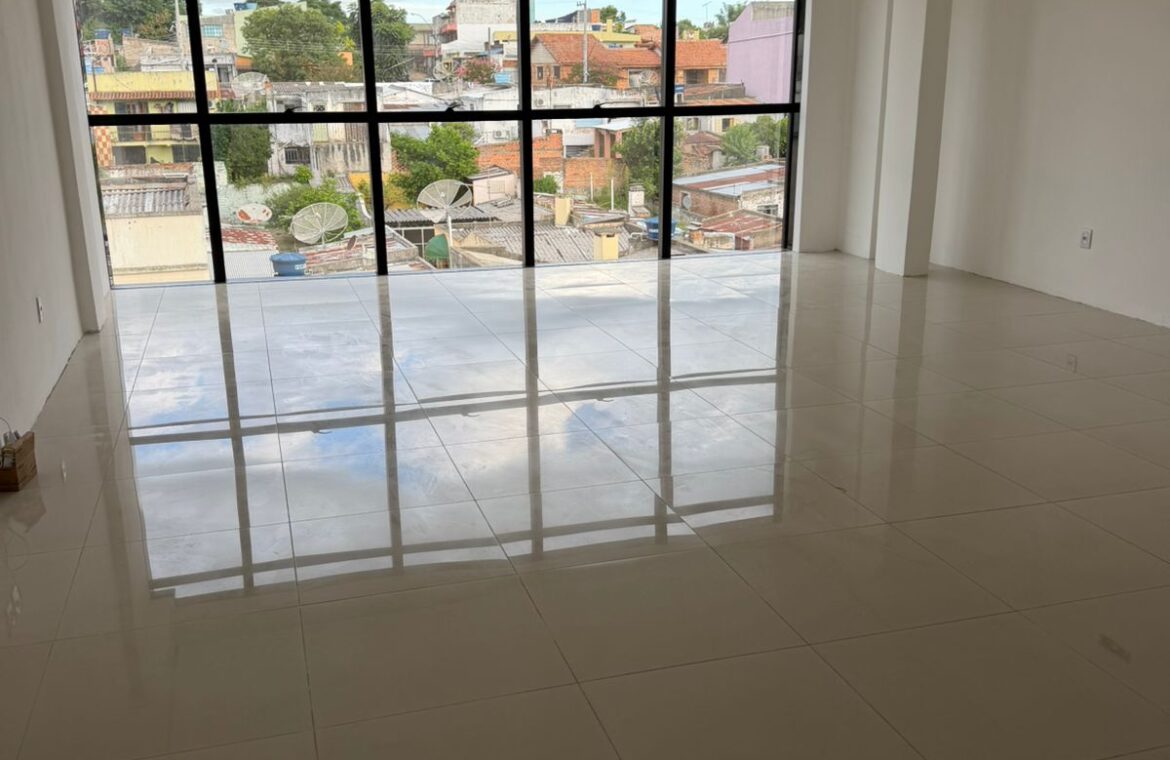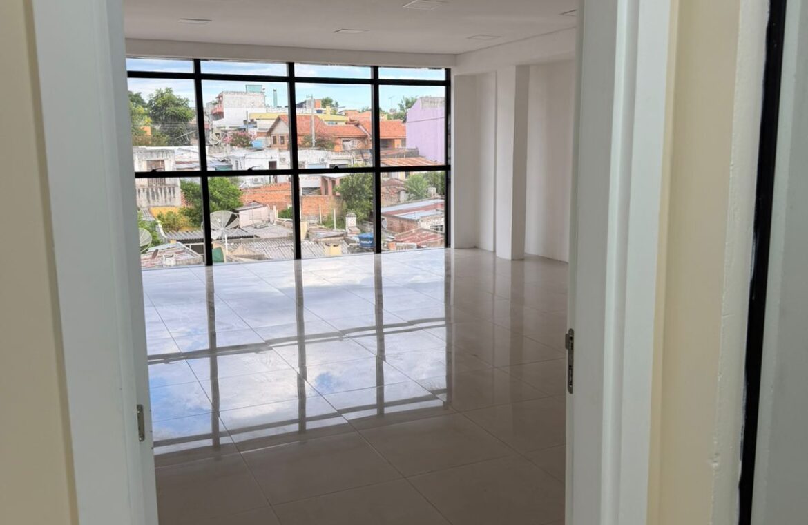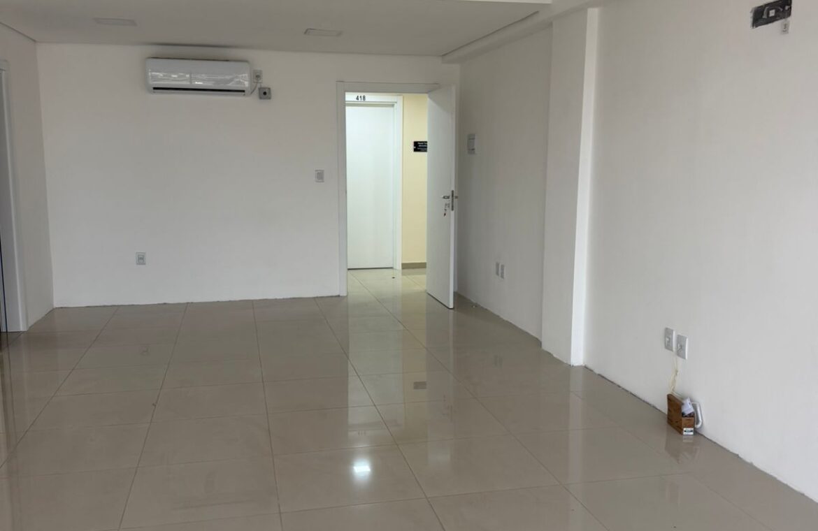 Sala comercial n° 417 com aproximadamente 43 m², bem iluminada (parede toda em janela)