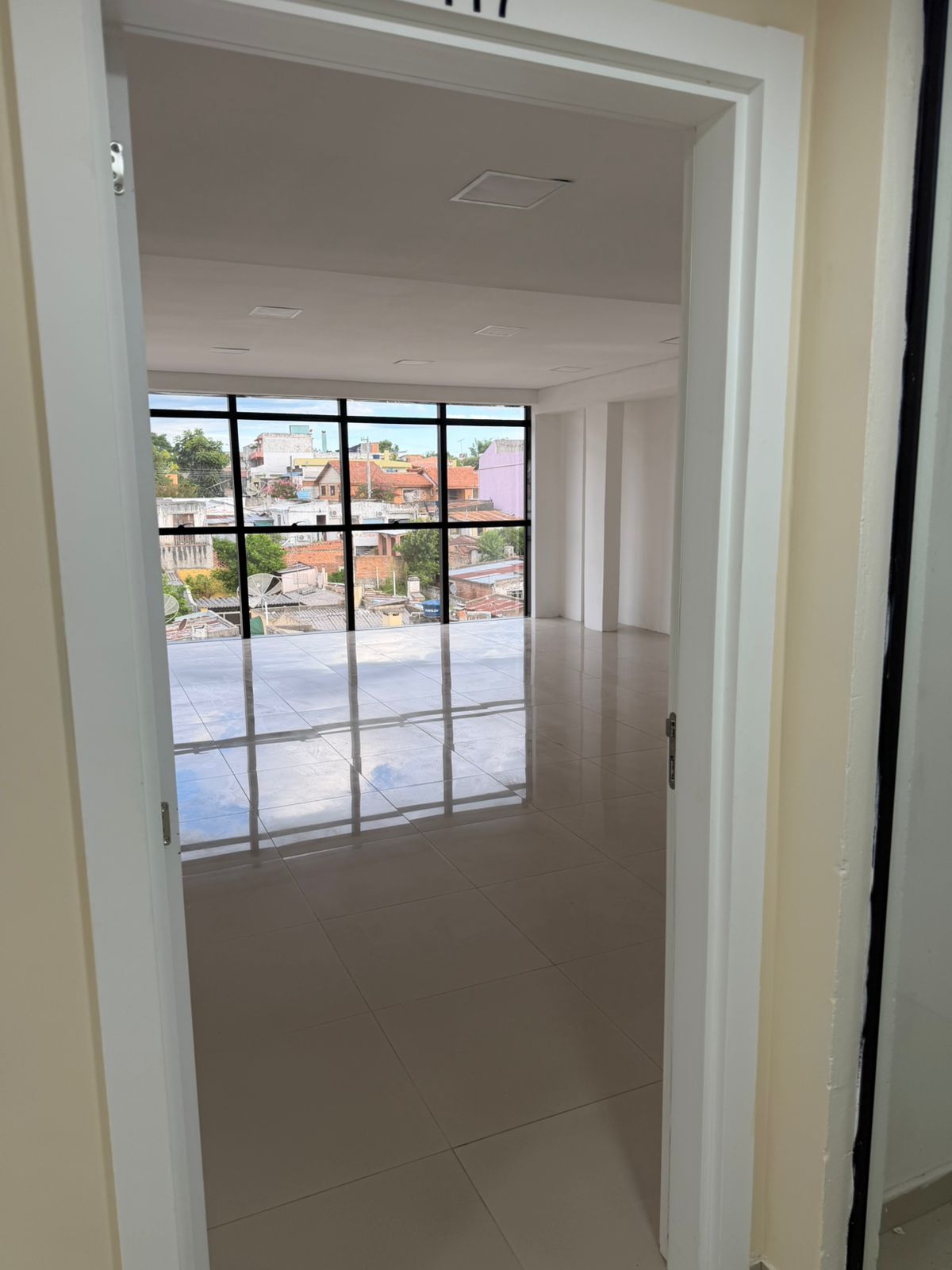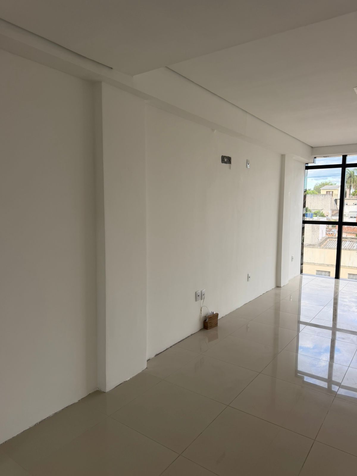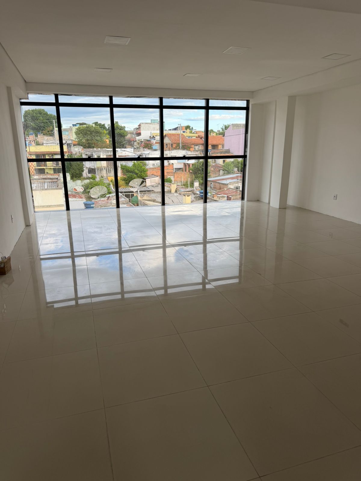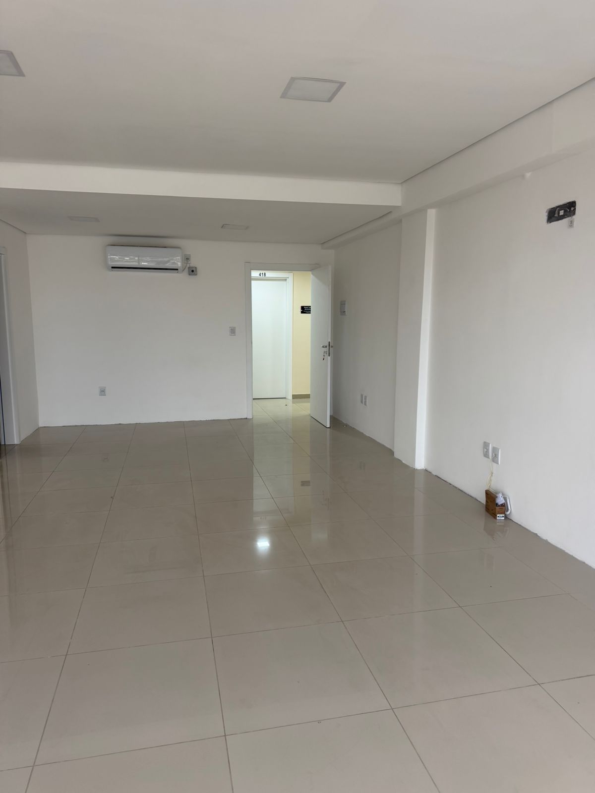 Sala comercial n° 417 com aproximadamente 43 m², bem iluminada (parede toda em janela)