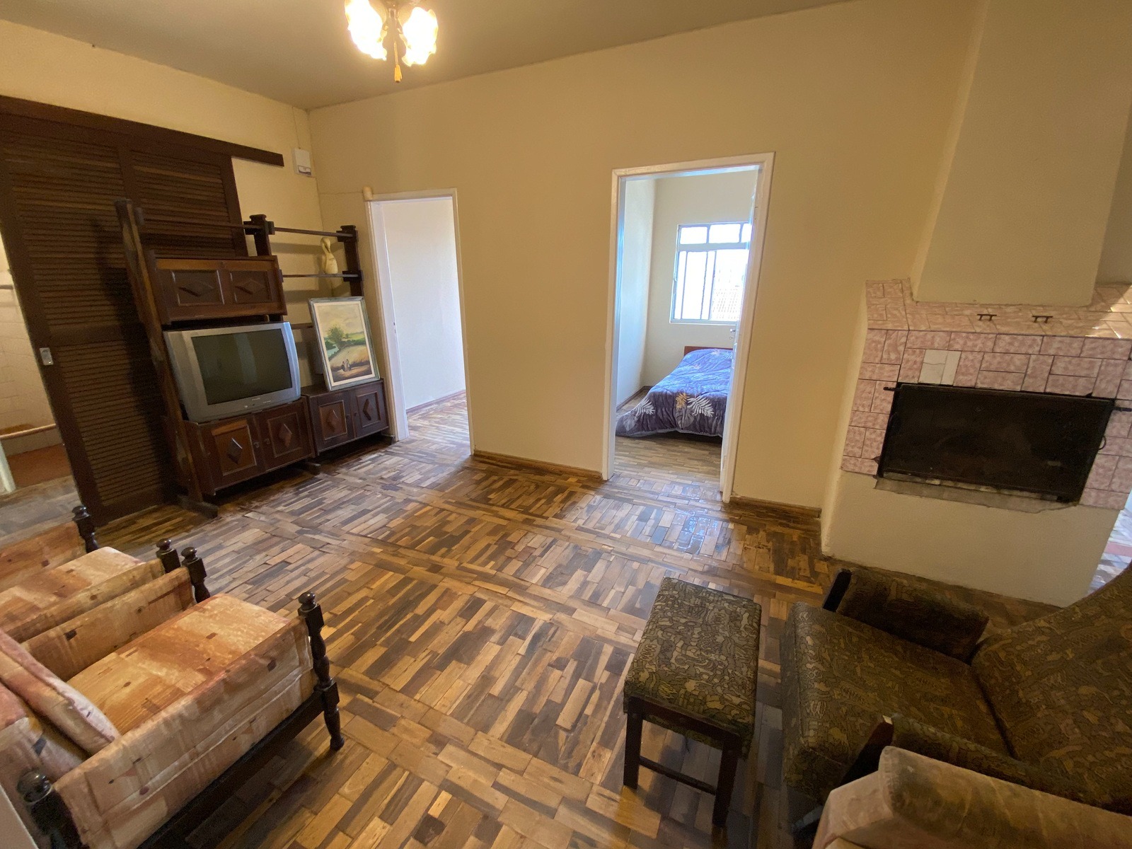 Casa principal hall, 5 dormitórios, circulação, sala ampla com lareira, sacada ,2 banheiros, área de serviço, amplo pátio e churrasqueira.