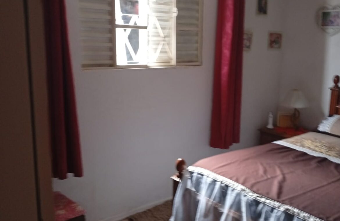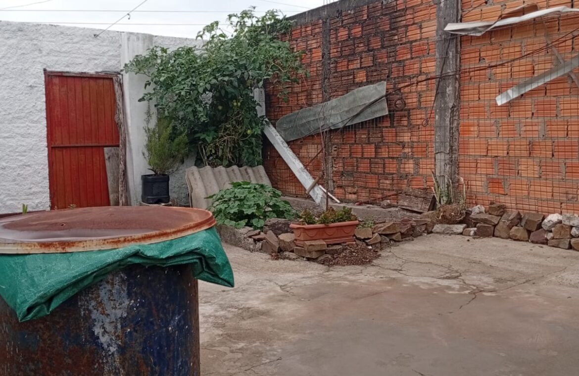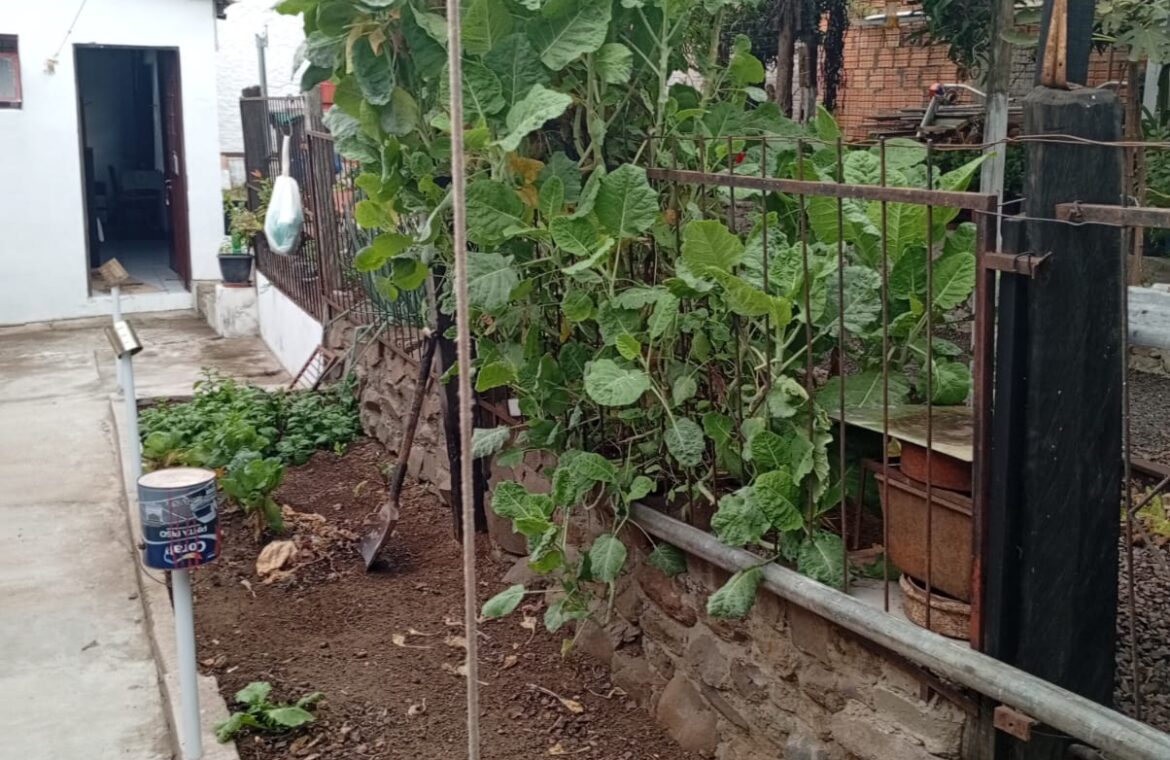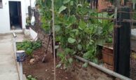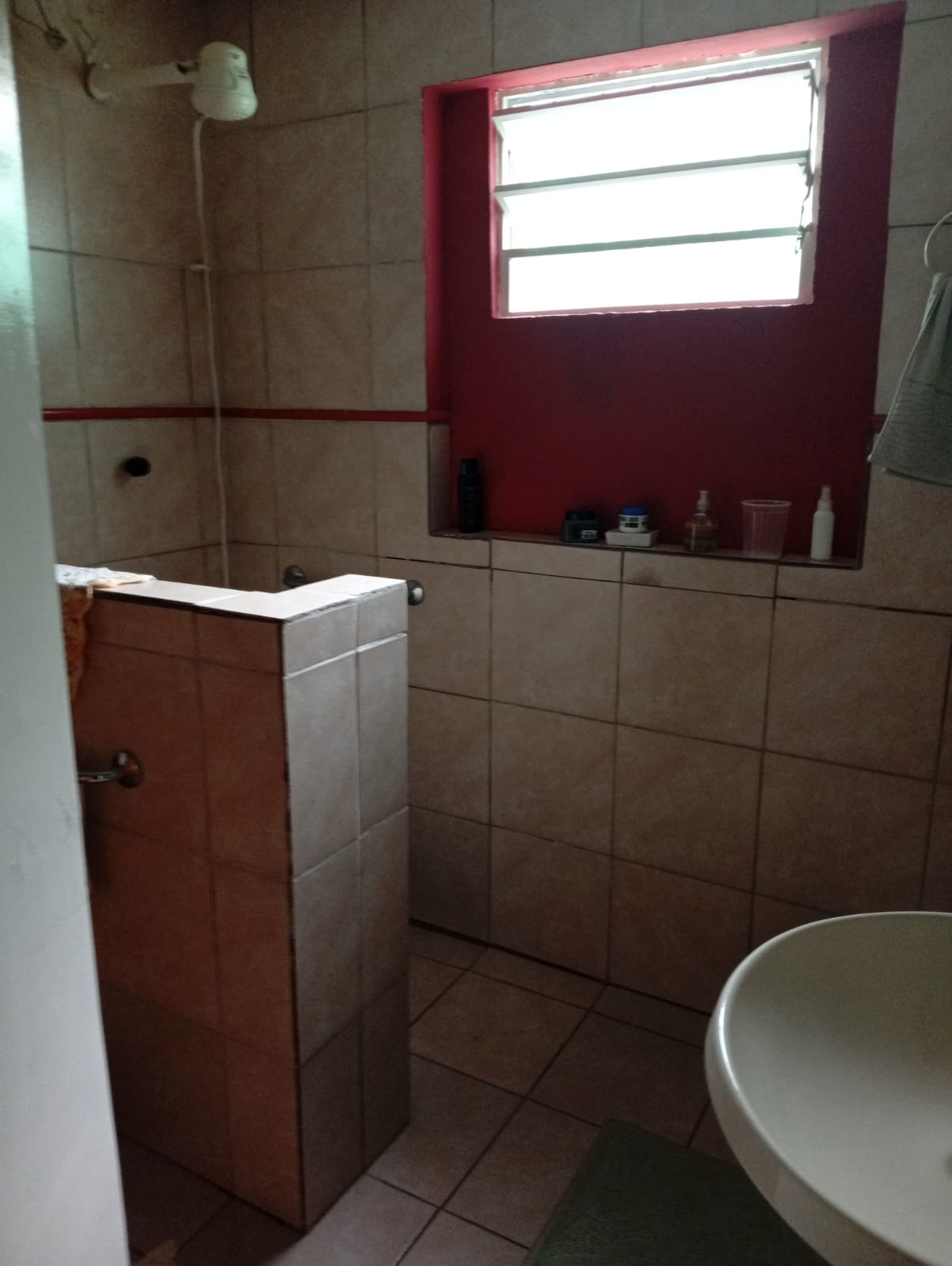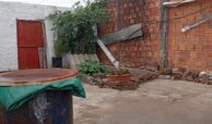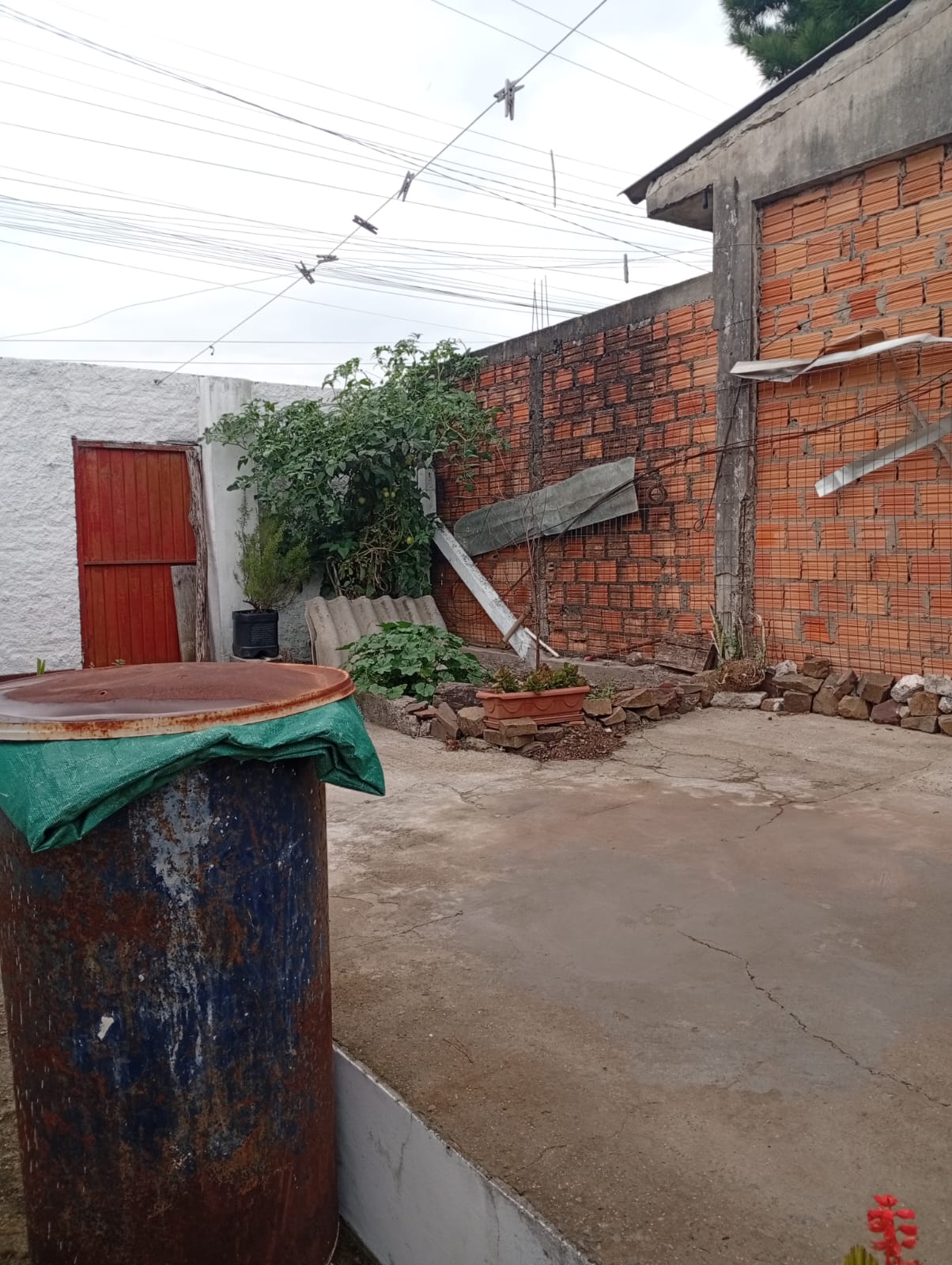 Pátio amplo, murado, árvores frutíferas e horta, aos fundos peça auxiliar com banheiro.