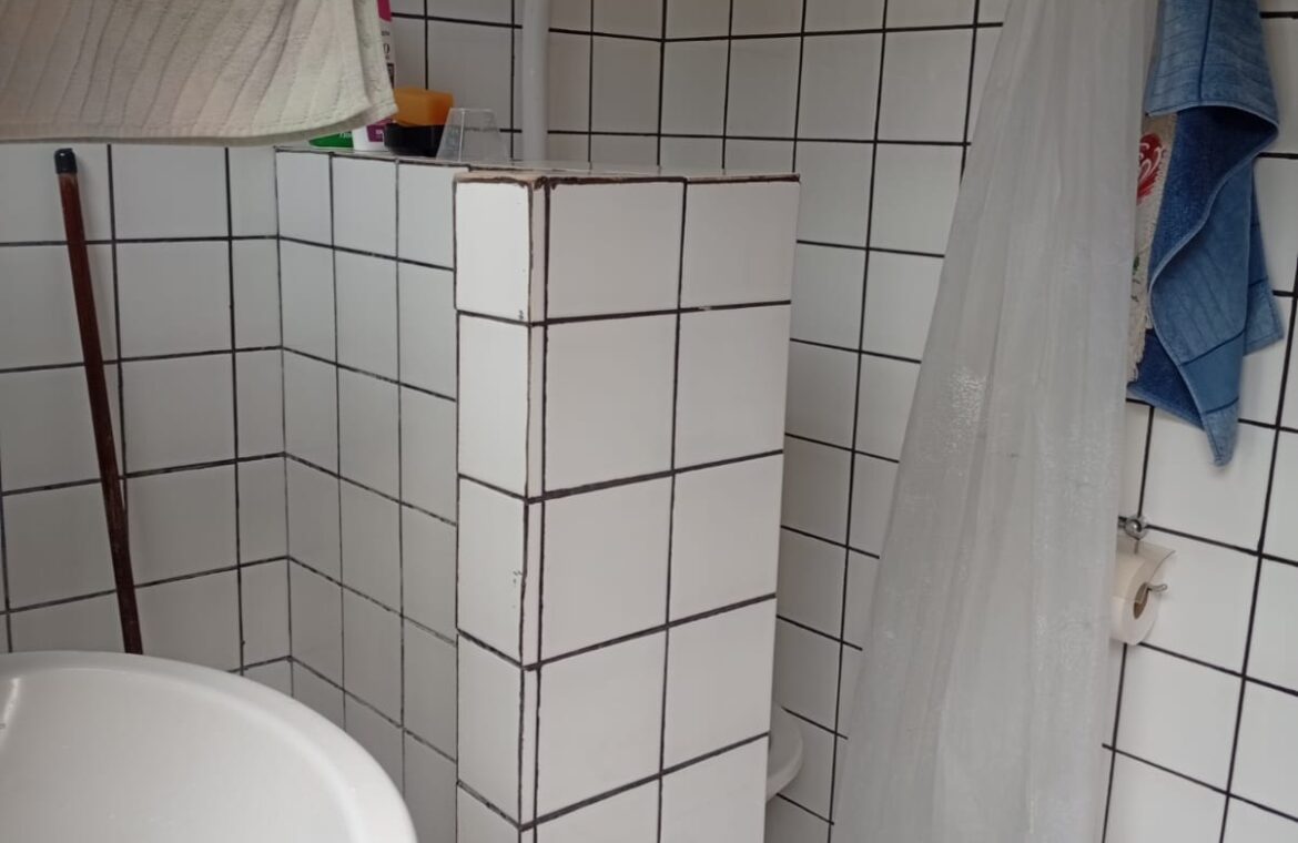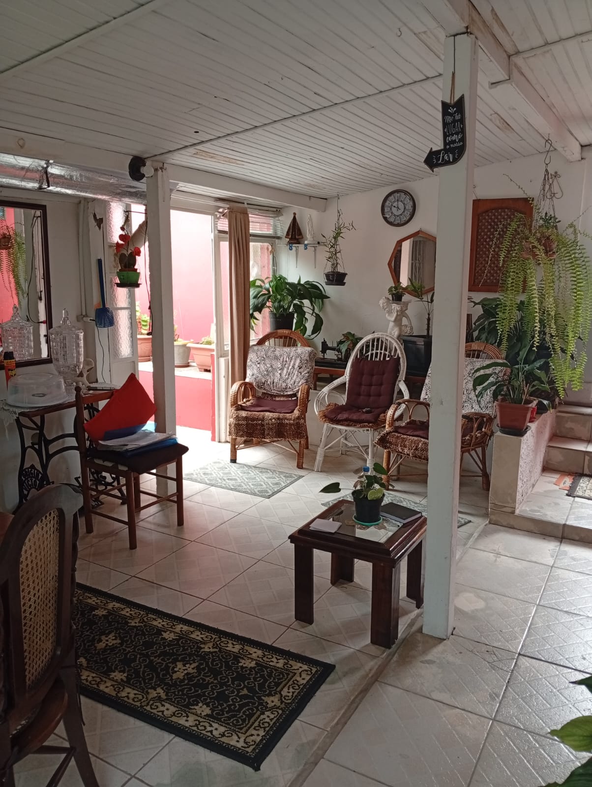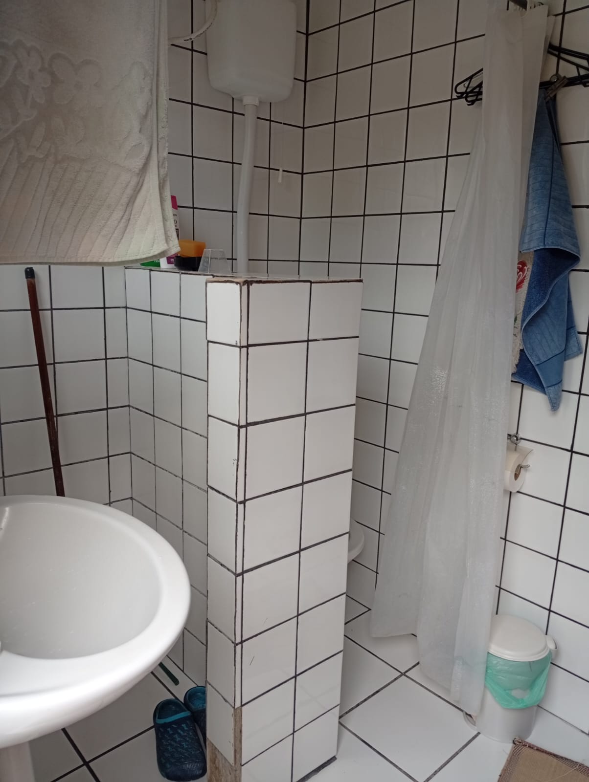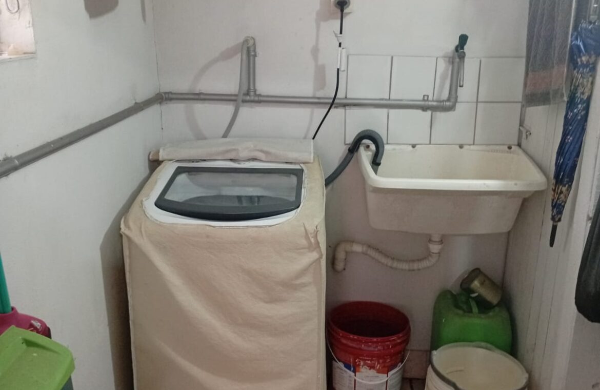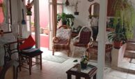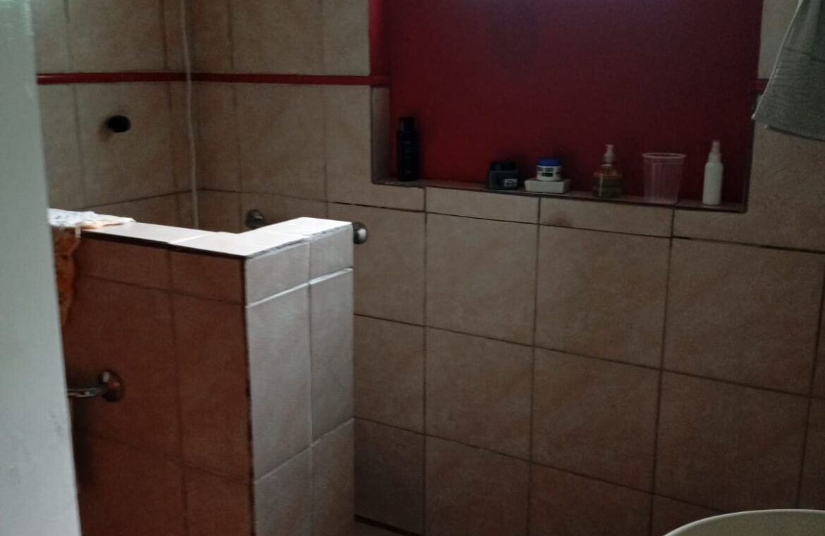 Pátio amplo, murado, árvores frutíferas e horta, aos fundos peça auxiliar com banheiro.