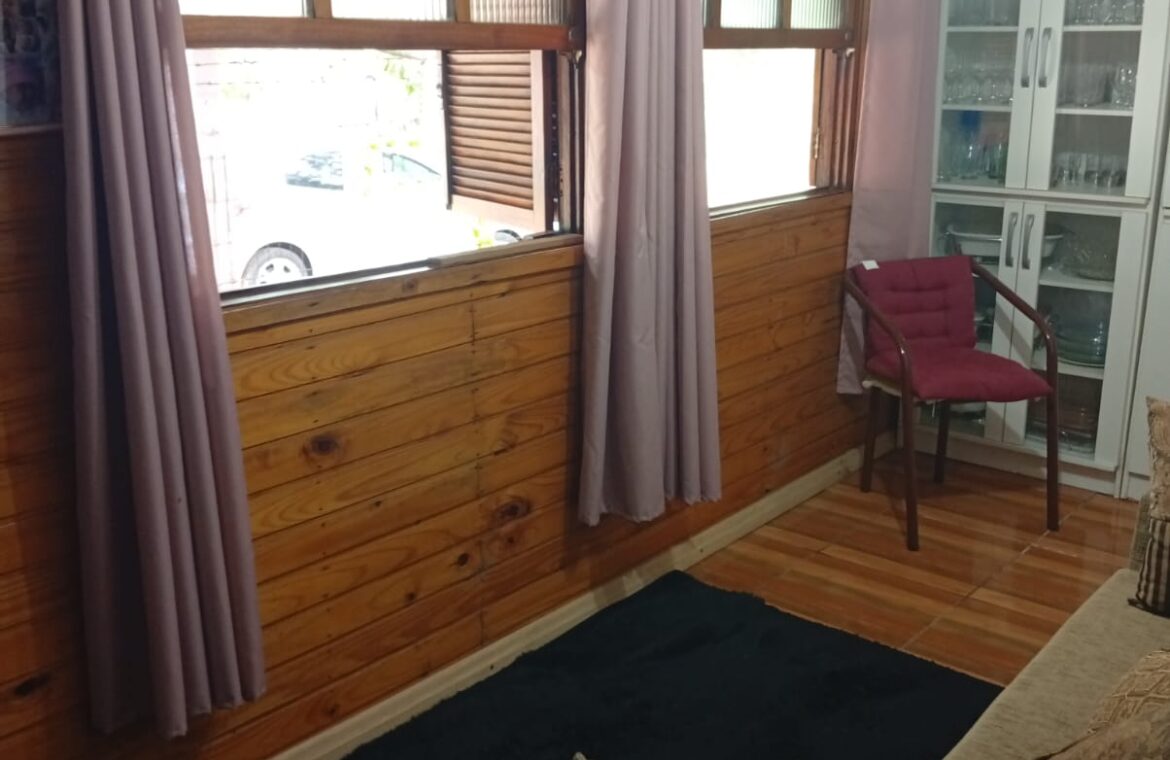 Casa mista de esquina com entrada pela rua Cap. Nery Fuentes, varanda, sala de estar, íntima e de jantar com lareira, 2 dormitórios sendo 1 suíte, cozinha com churrasqueira, despensa (depósito) e área de serviço.