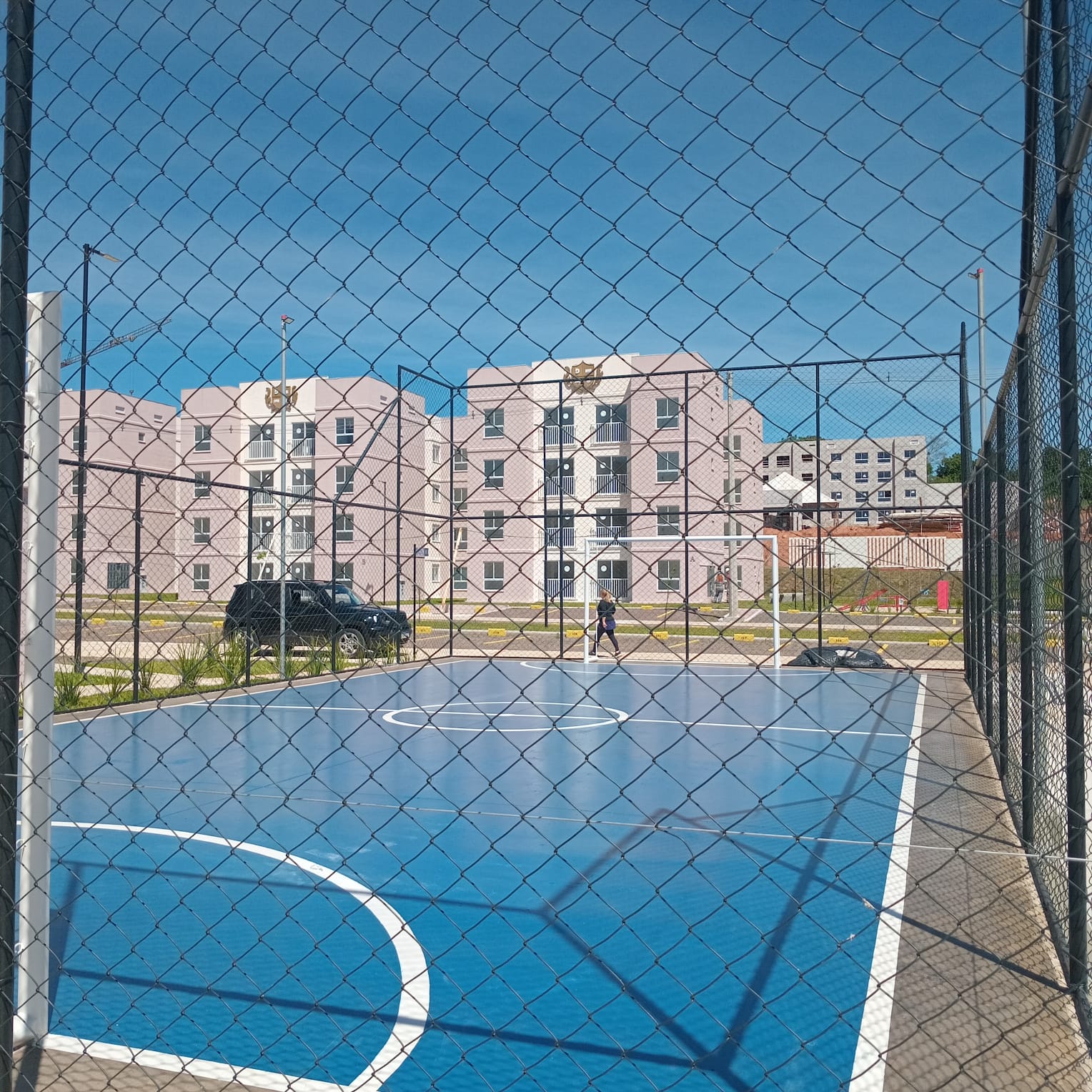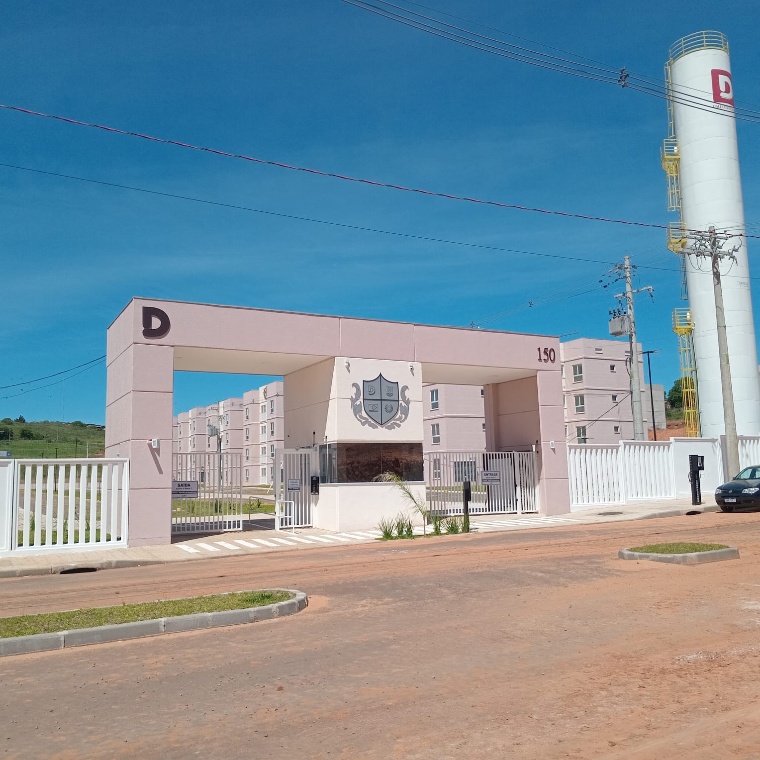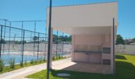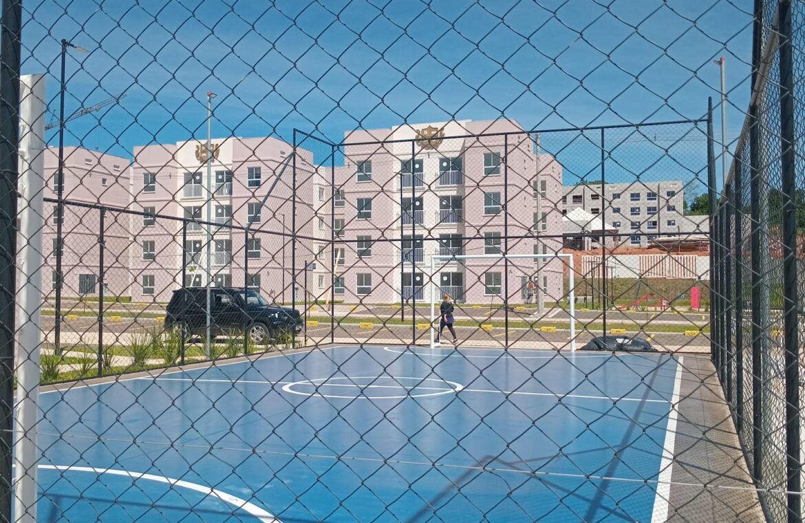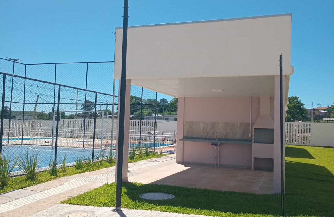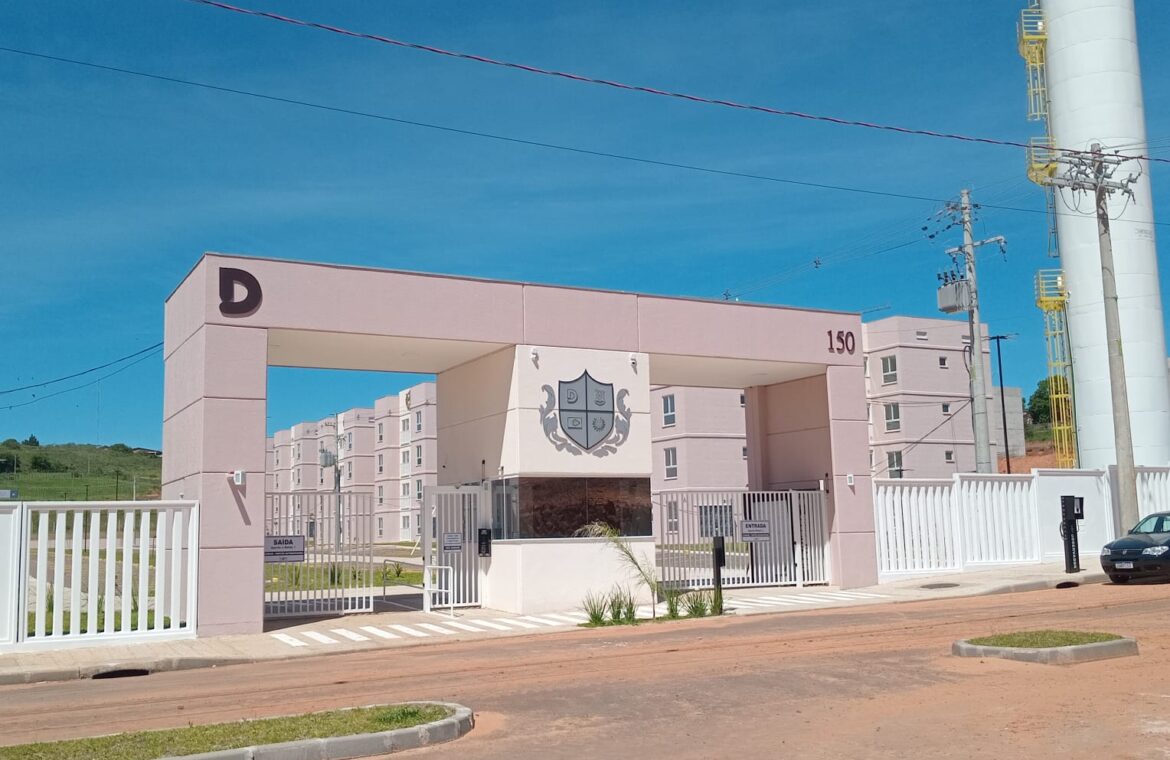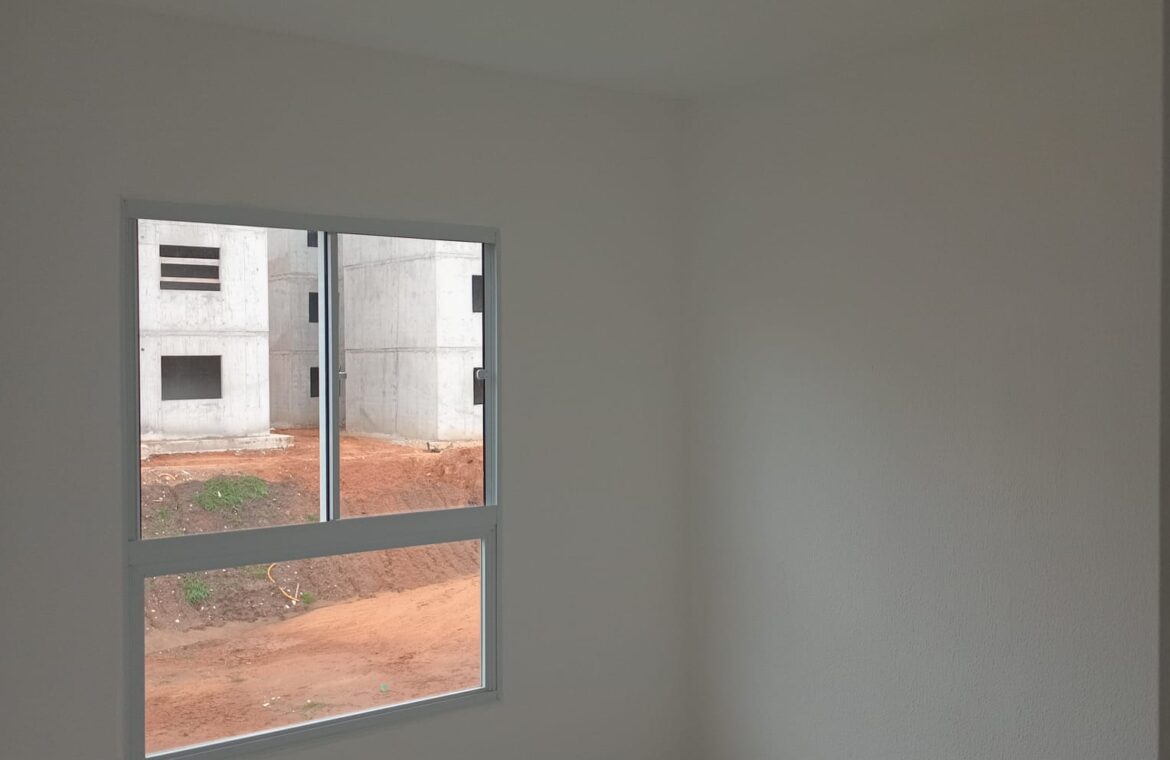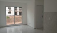 Um apartamento com 02 dormitórios, sala e cozinha conjugada, banheiro, área de serviço e box para carro.