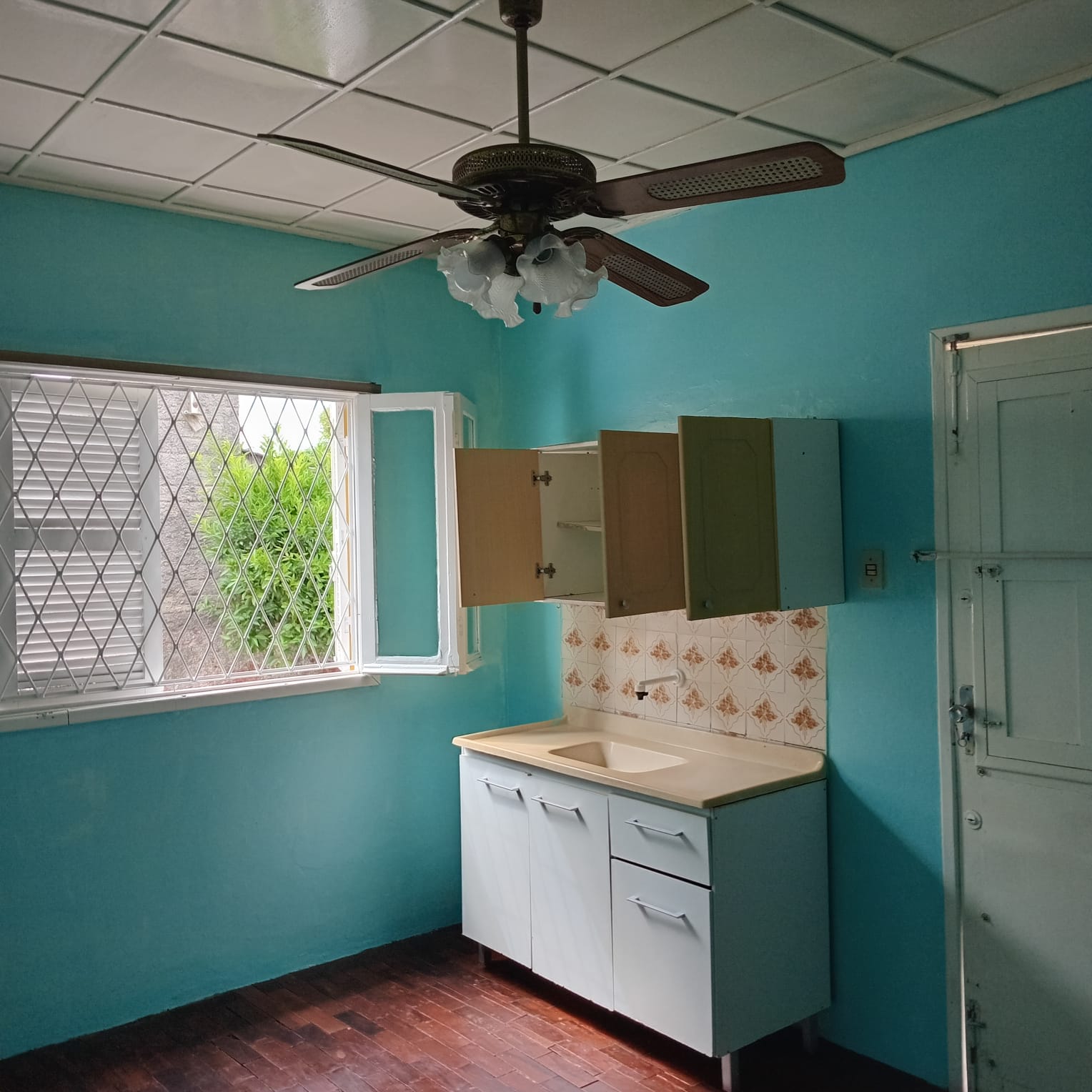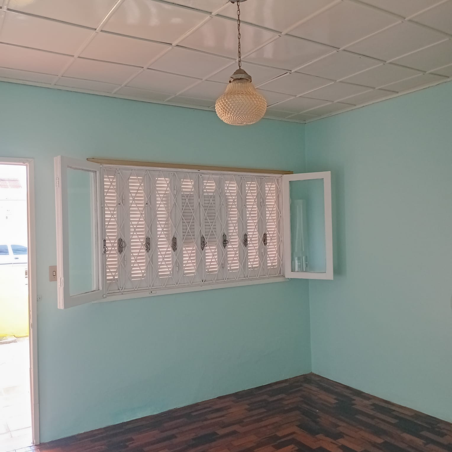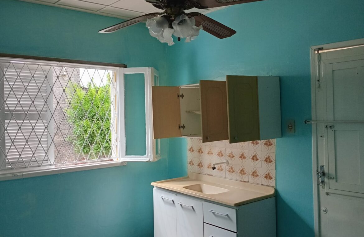 01 banheiro, despensa, entrada para carro compartilhada e um pequeno pátio.