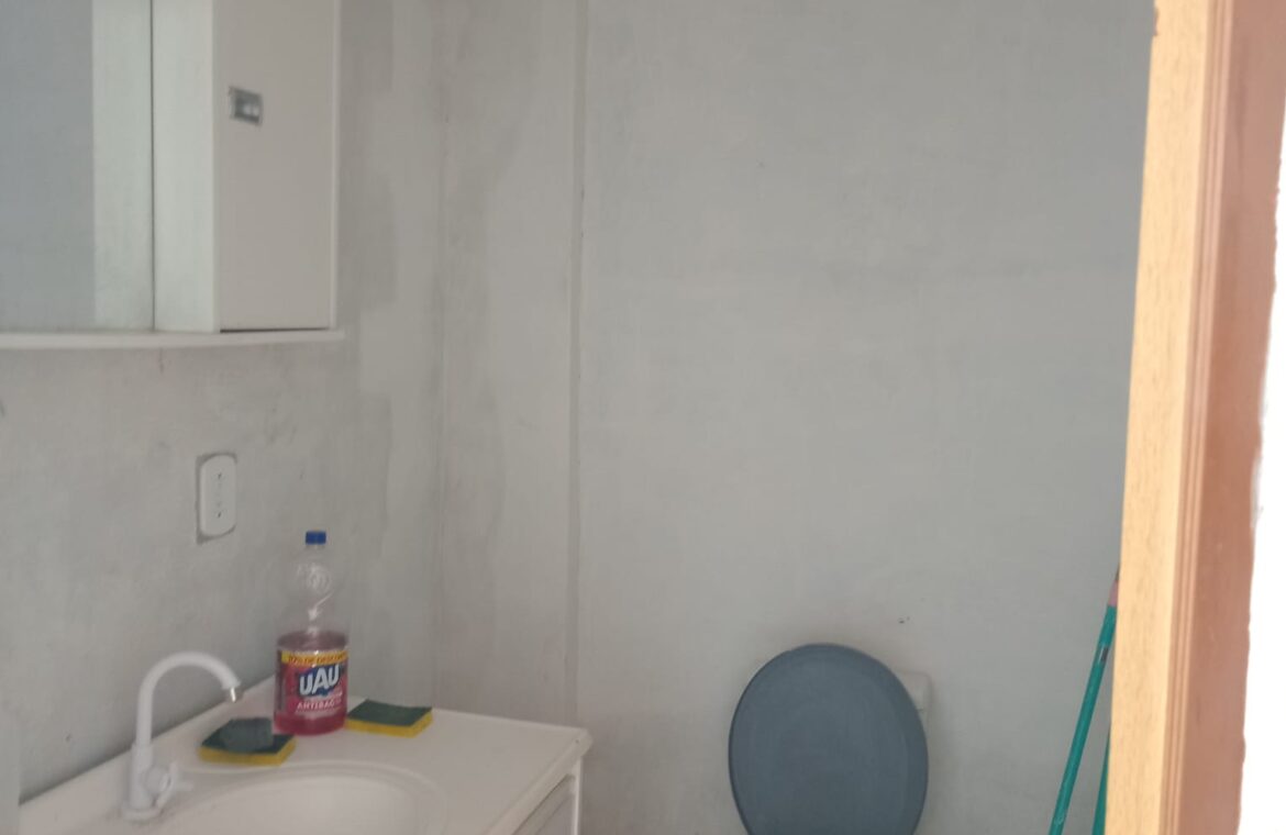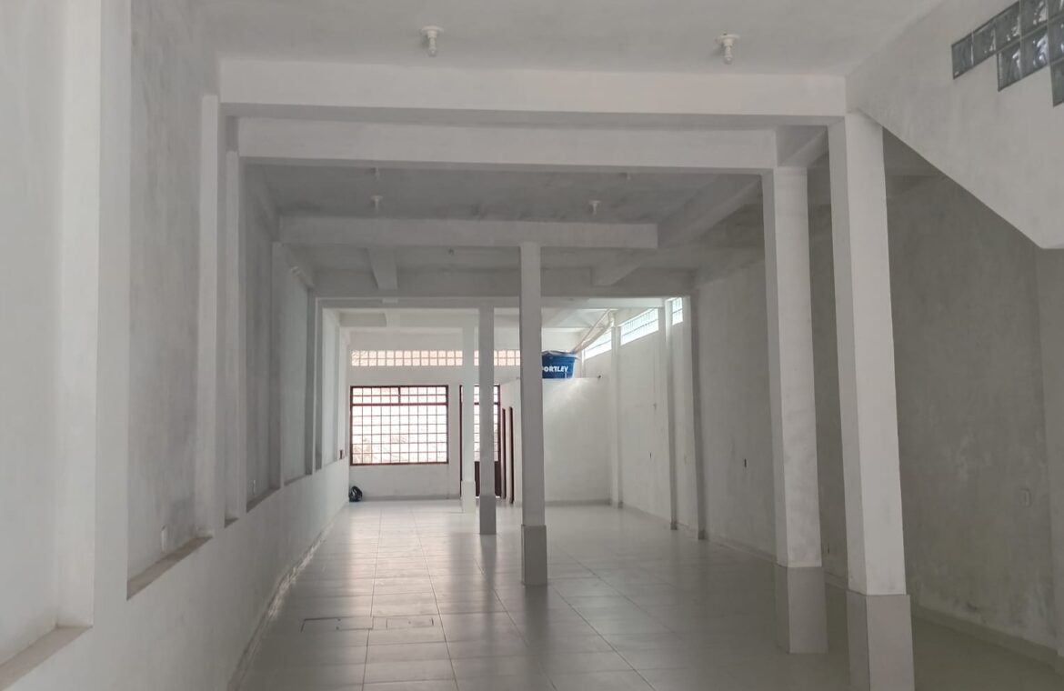 Salão comercial com área aproximada de 150m² com 01 banheiro, espaço para cozinha e pátio.