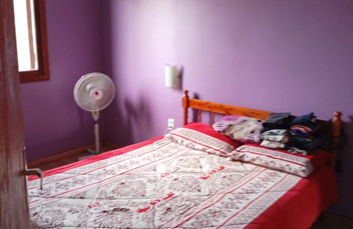 Casa de alvenaria composta de sala, 2 dormitórios, cozinha, área de serviço e banheiro.