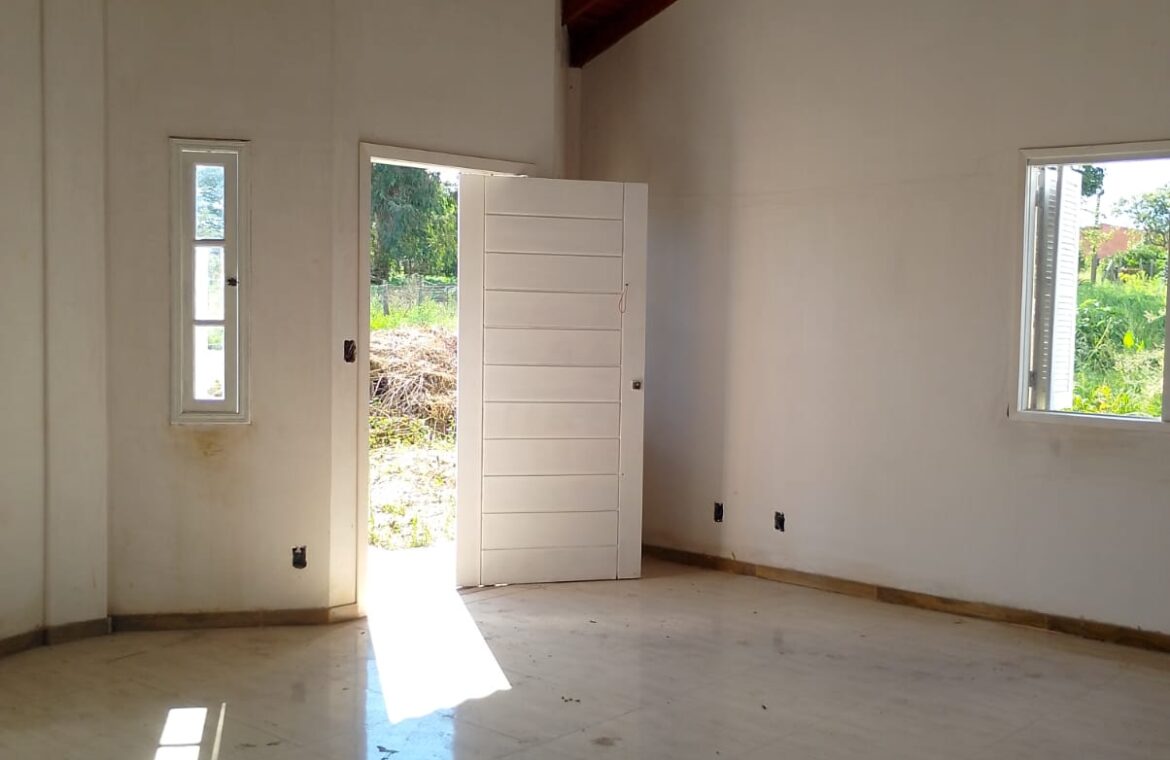 Casa de alvenaria nova, 2 dormitórios, sala, cozinha, banheiro e área de serviço. Entrada para carro e pátio todo cercado com cerca.