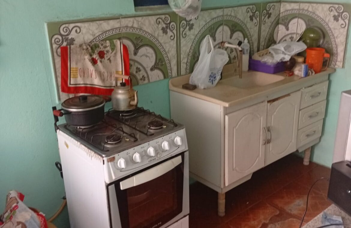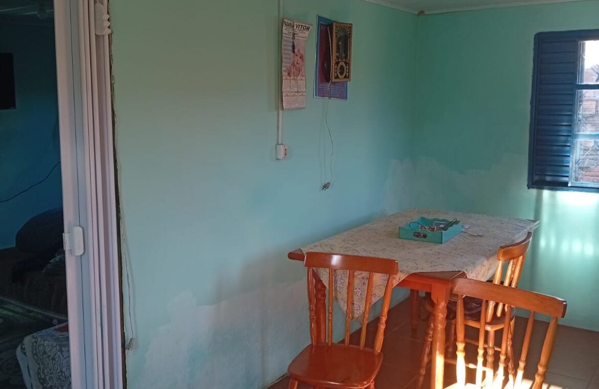 Casa de alvenaria,  1 dormitório, banheiro, sala, cozinha, varanda e área a de serviço.