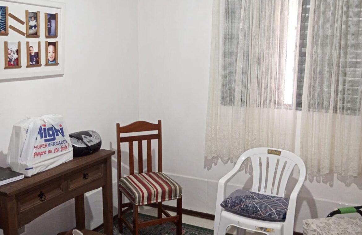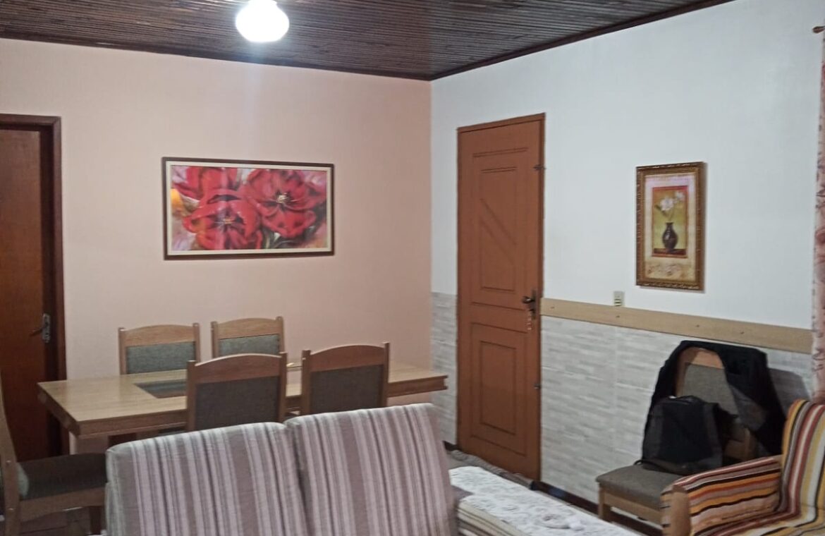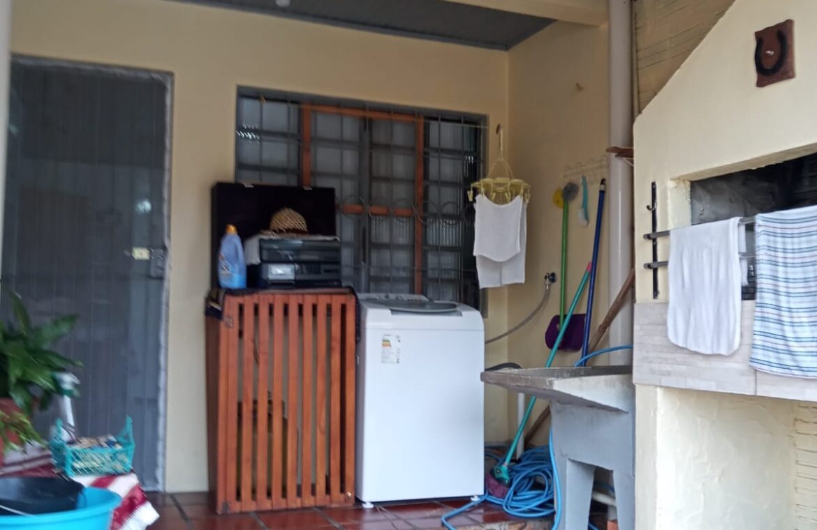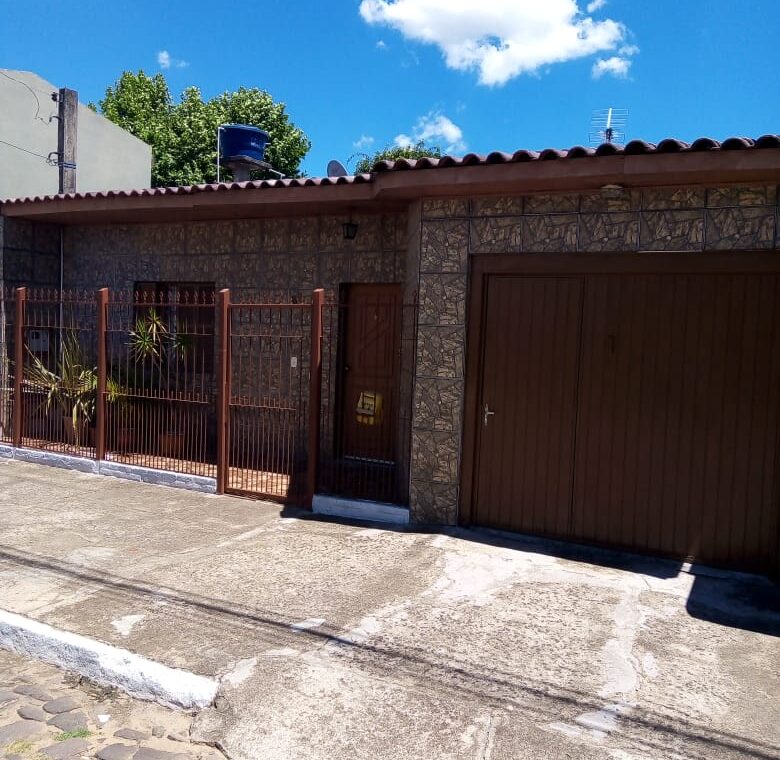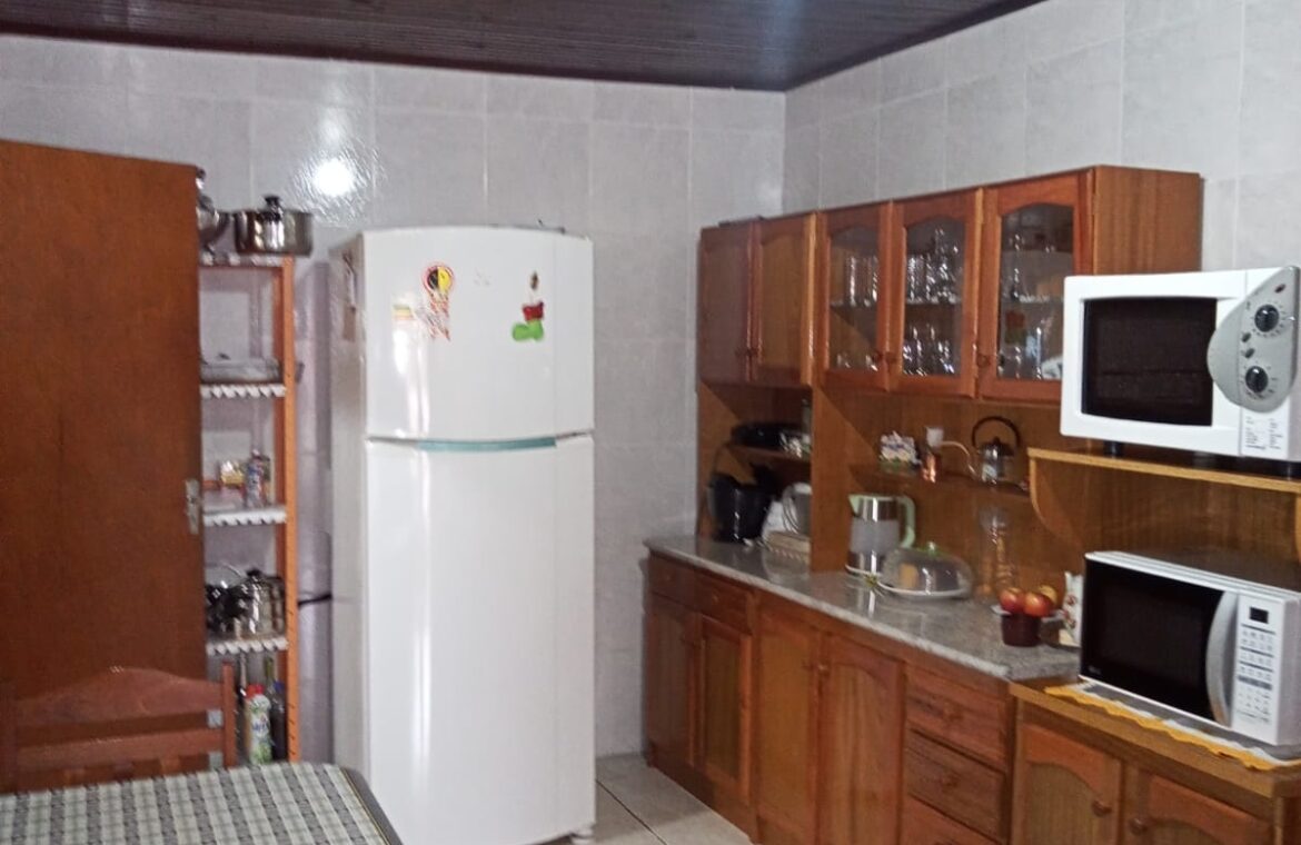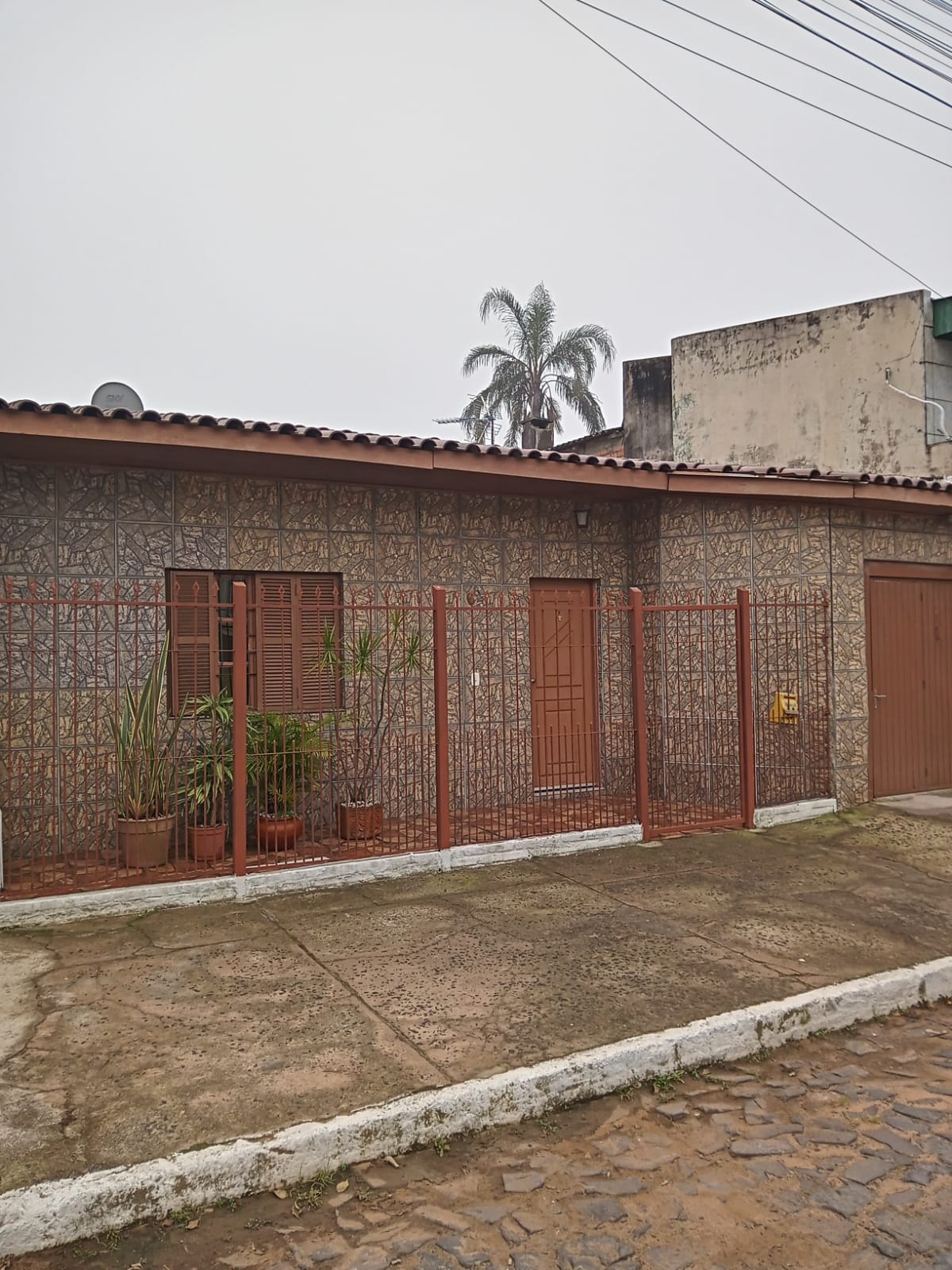 Casa de alvenaria, hall de entrada, sala ampla estar e jantar, circulação, 3 dormitórios, banheiro, copa, cozinha e área de serviço.