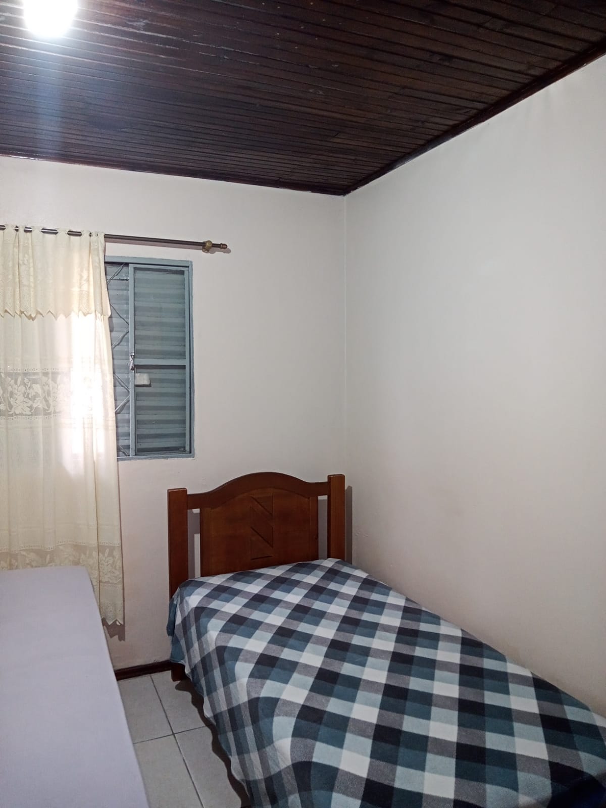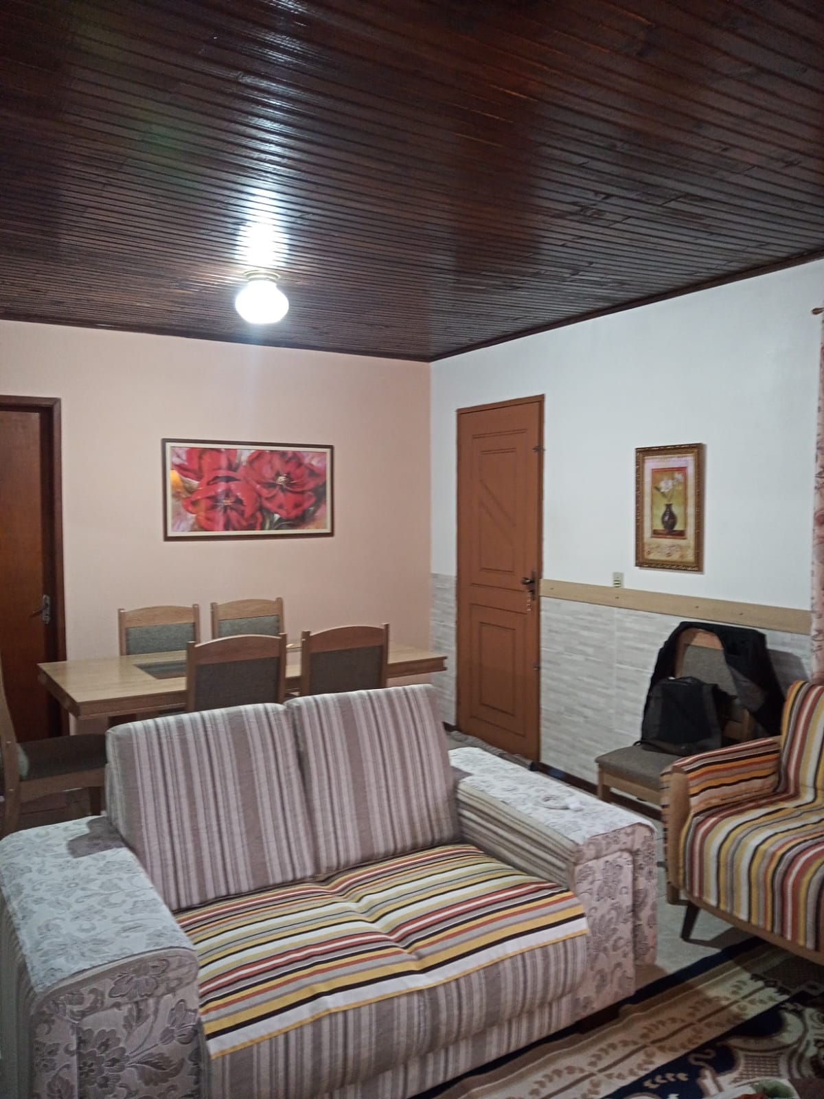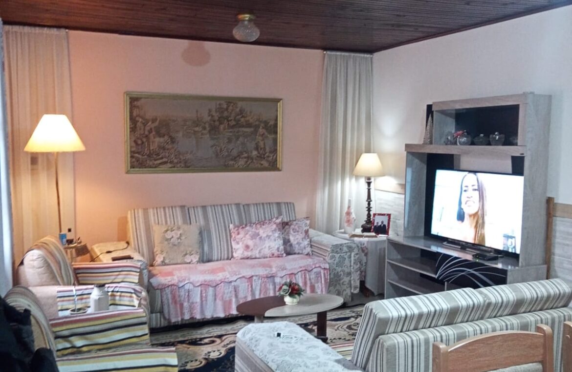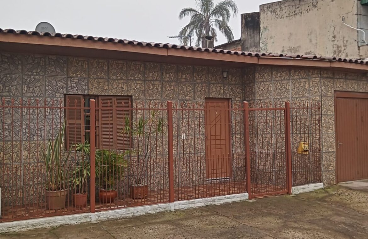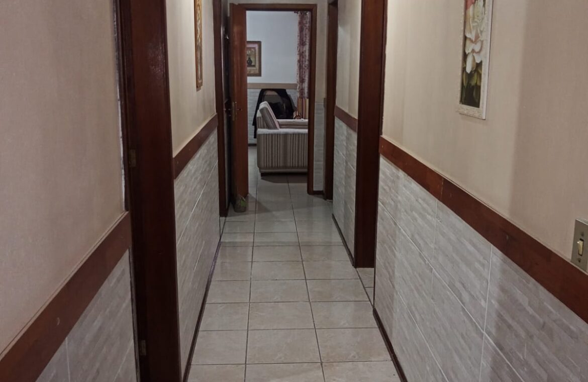 Casa de alvenaria, hall de entrada, sala ampla estar e jantar, circulação, 3 dormitórios, banheiro, copa, cozinha e área de serviço.