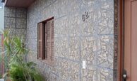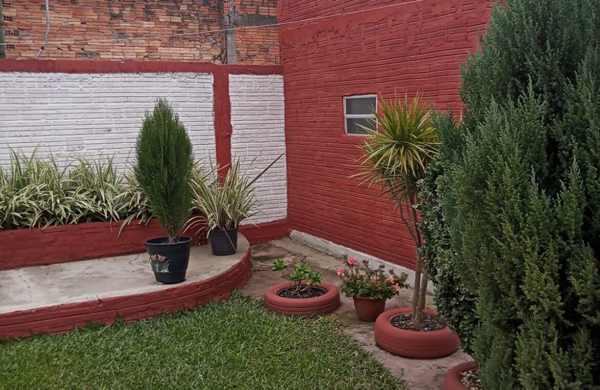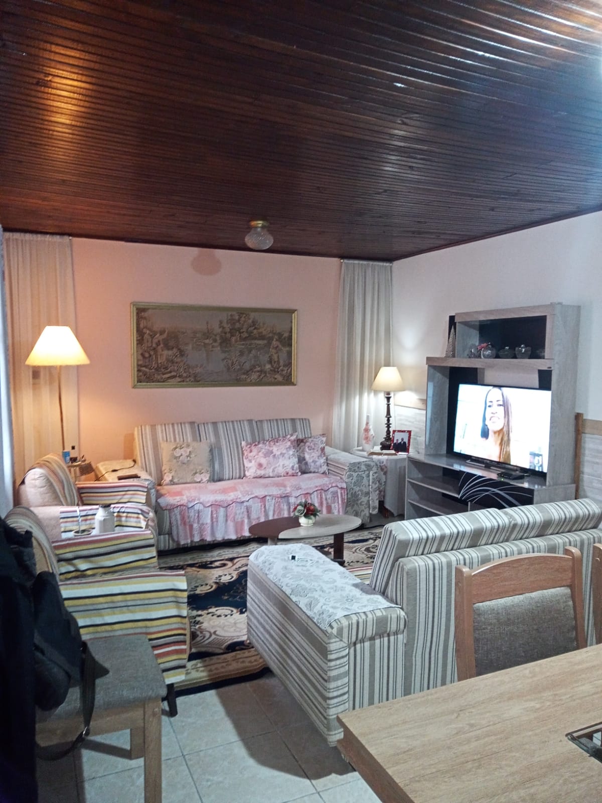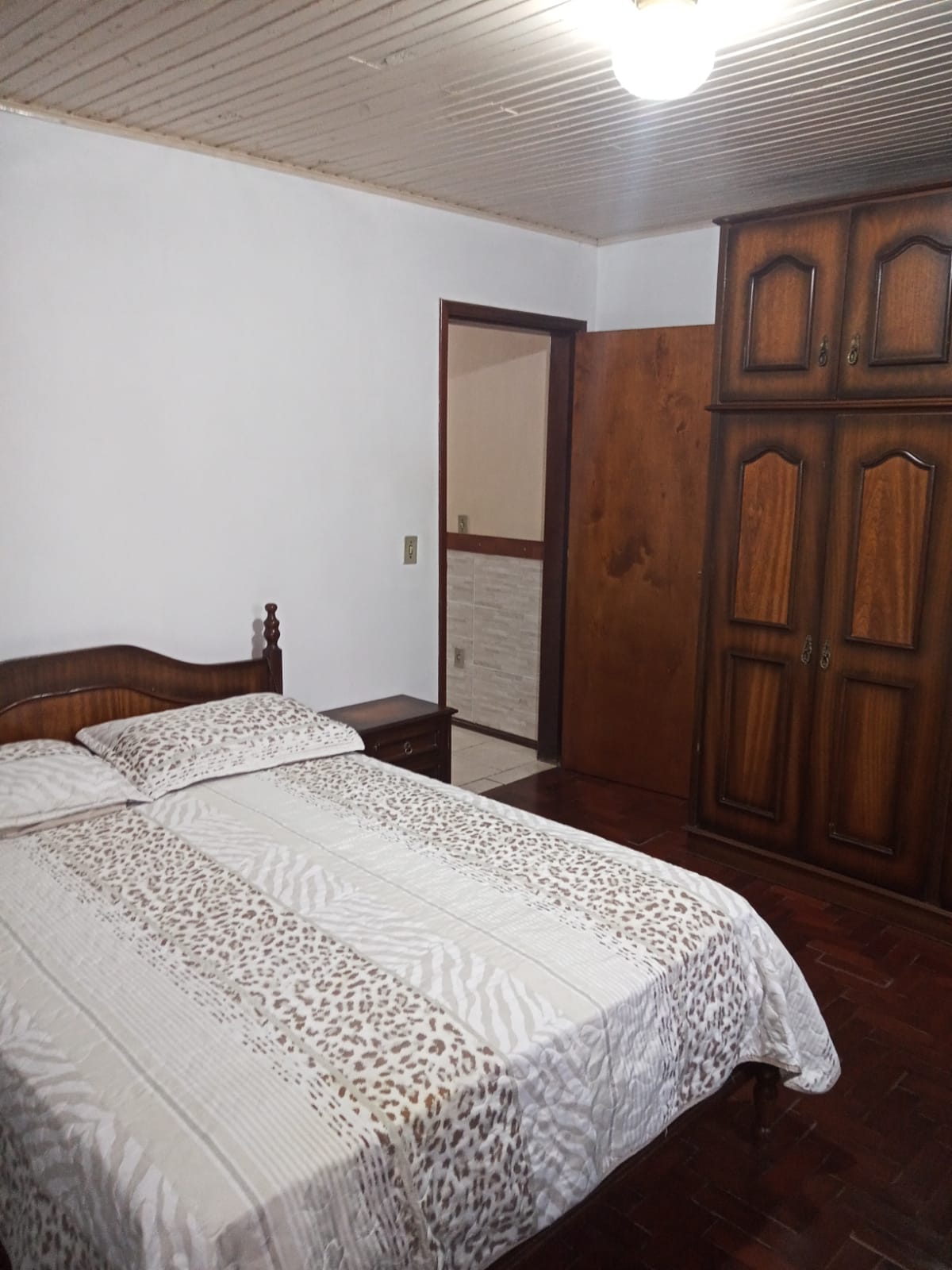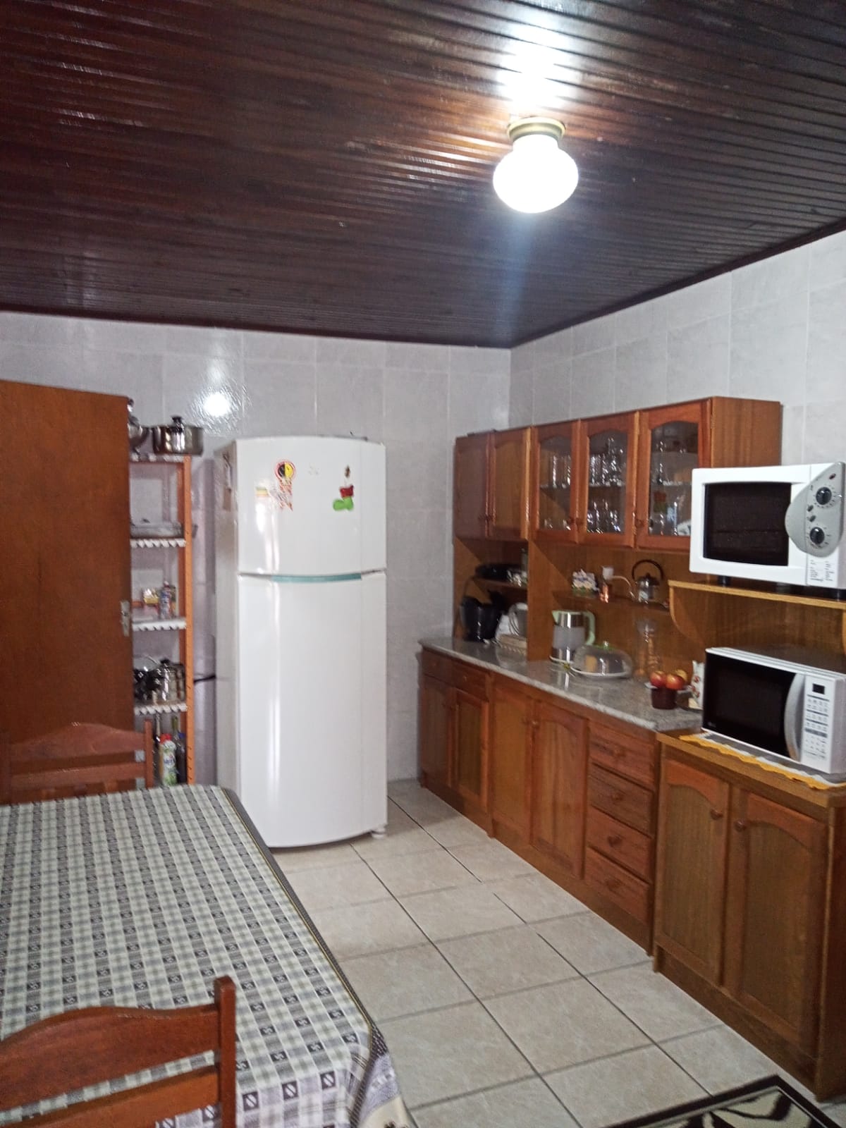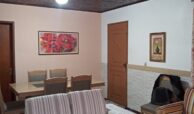Casa de alvenaria, hall de entrada, sala ampla estar e jantar, circulação, 3 dormitórios, banheiro, copa, cozinha e área de serviço.