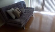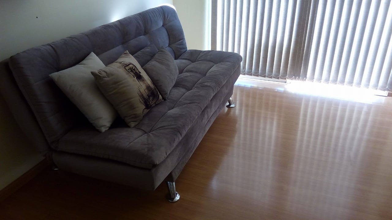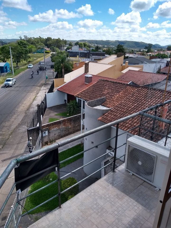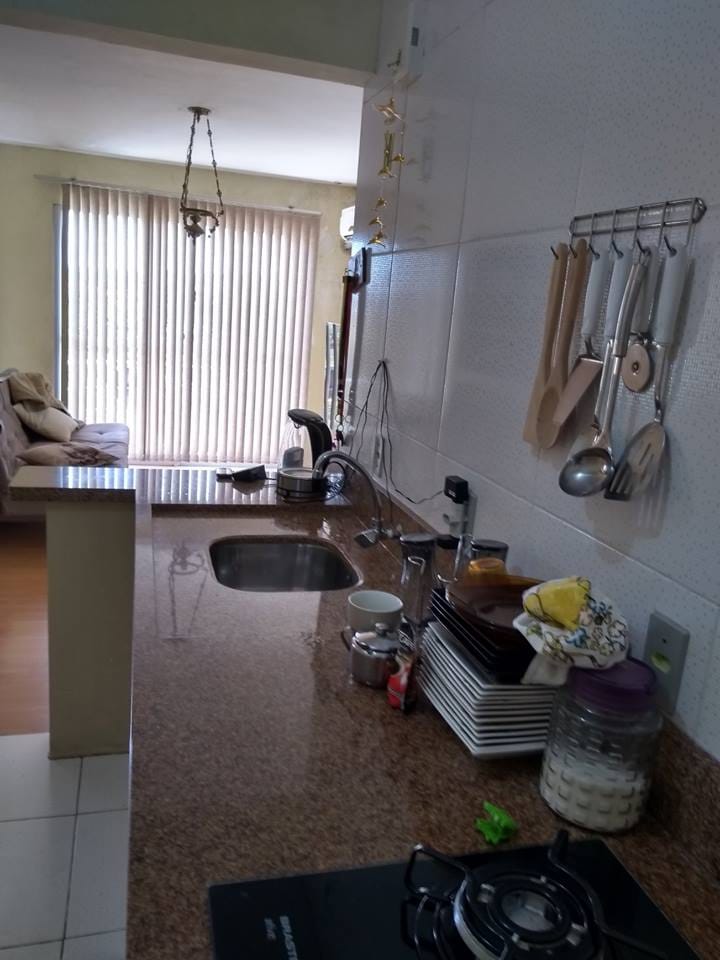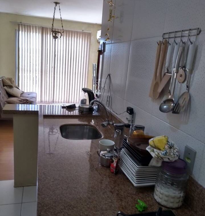 Sala e cozinha conjugadas com sacada, banheiro, 2 dormitórios.