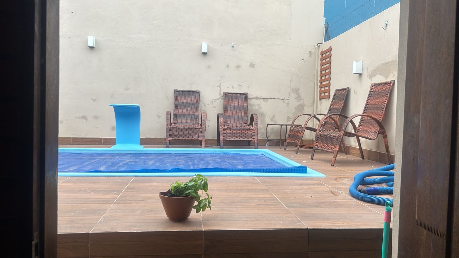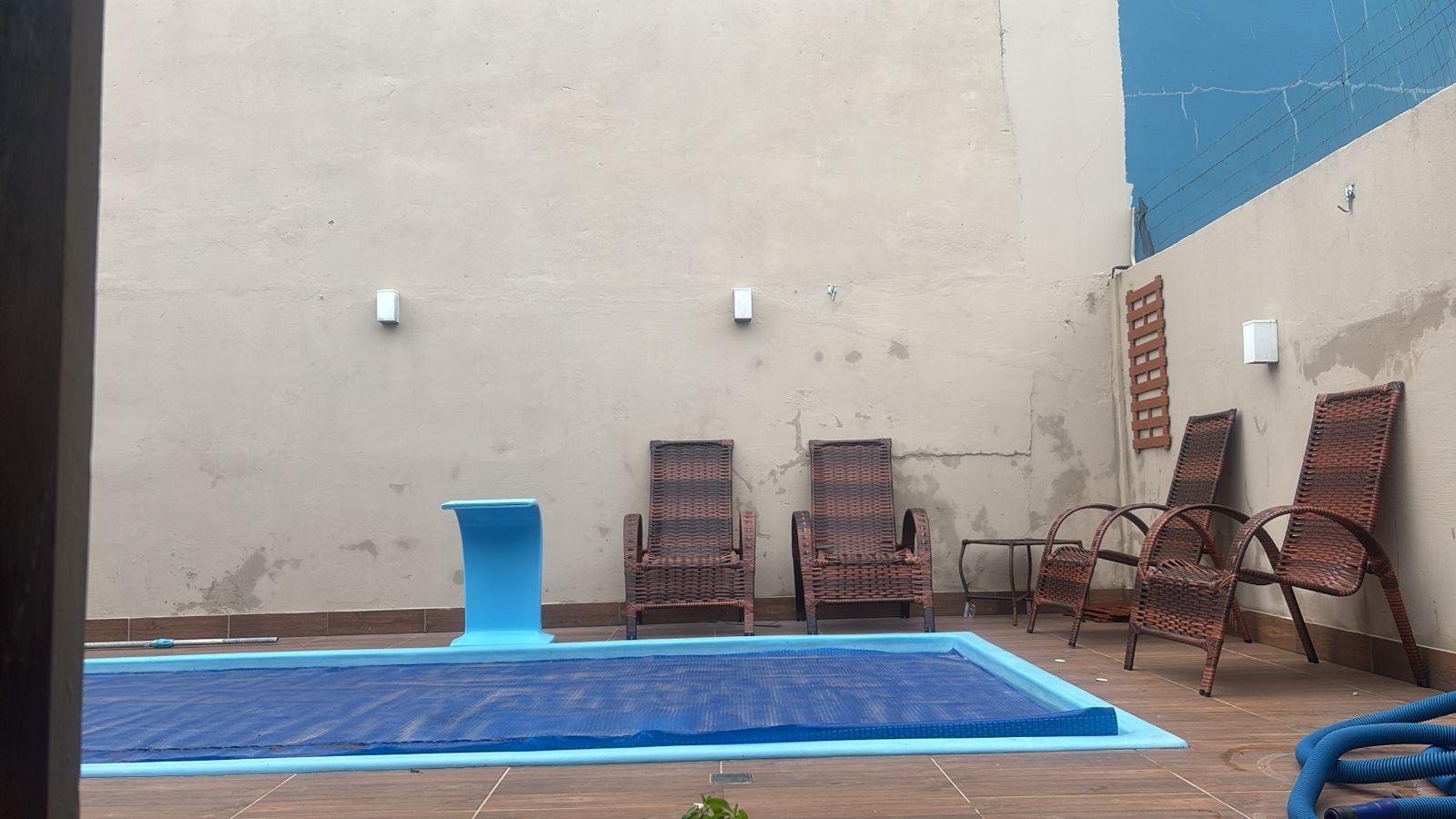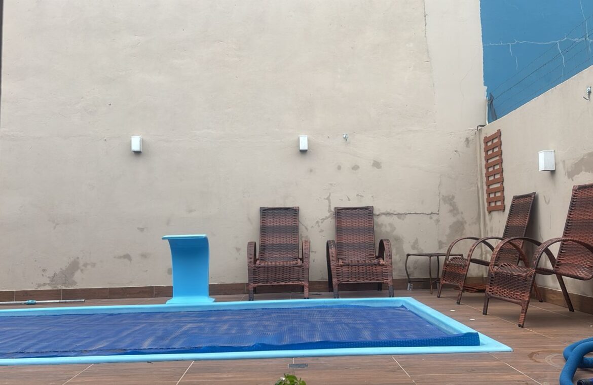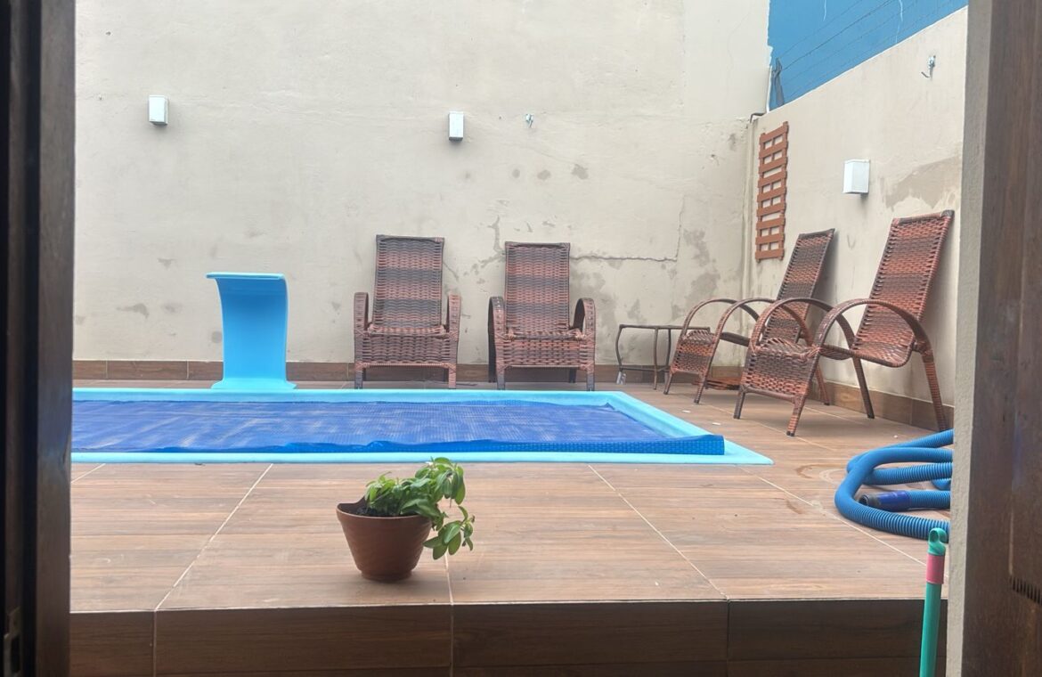Pátio fechado,  área gourmet com churrasqueira e piscina.