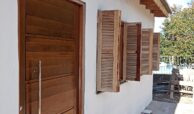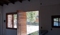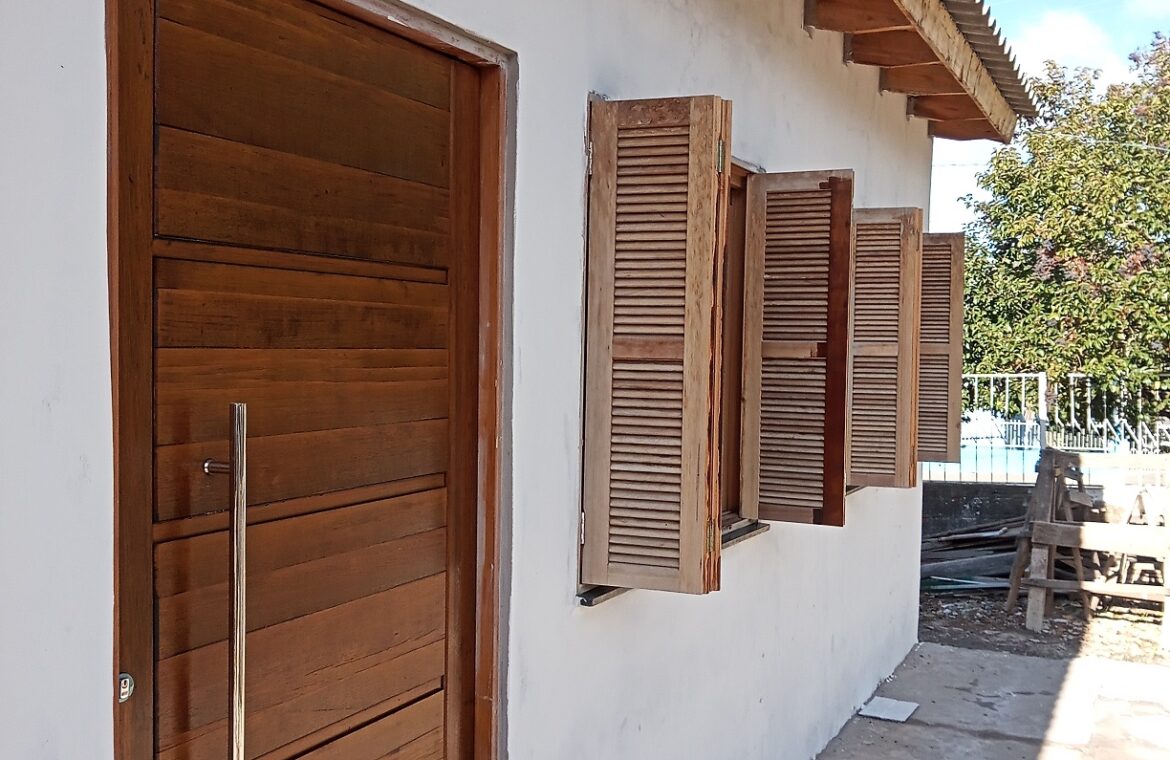 A segunda casa em alvenaria, com dormitório forrado com madeira, sala e cozinha integradas, banheiro e área de serviço. Churrasqueira e entrada para carro.